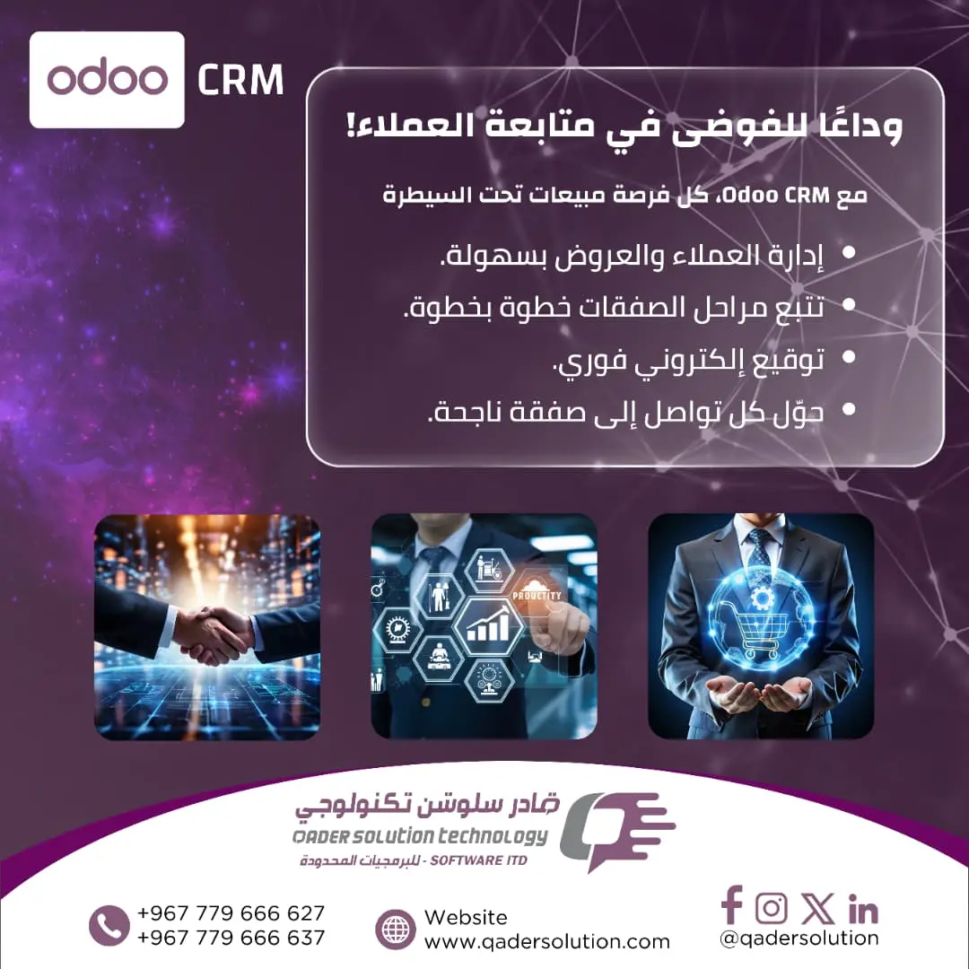 مع Odoo CRM، كل فرصة مبيعات تحت السيطرة.